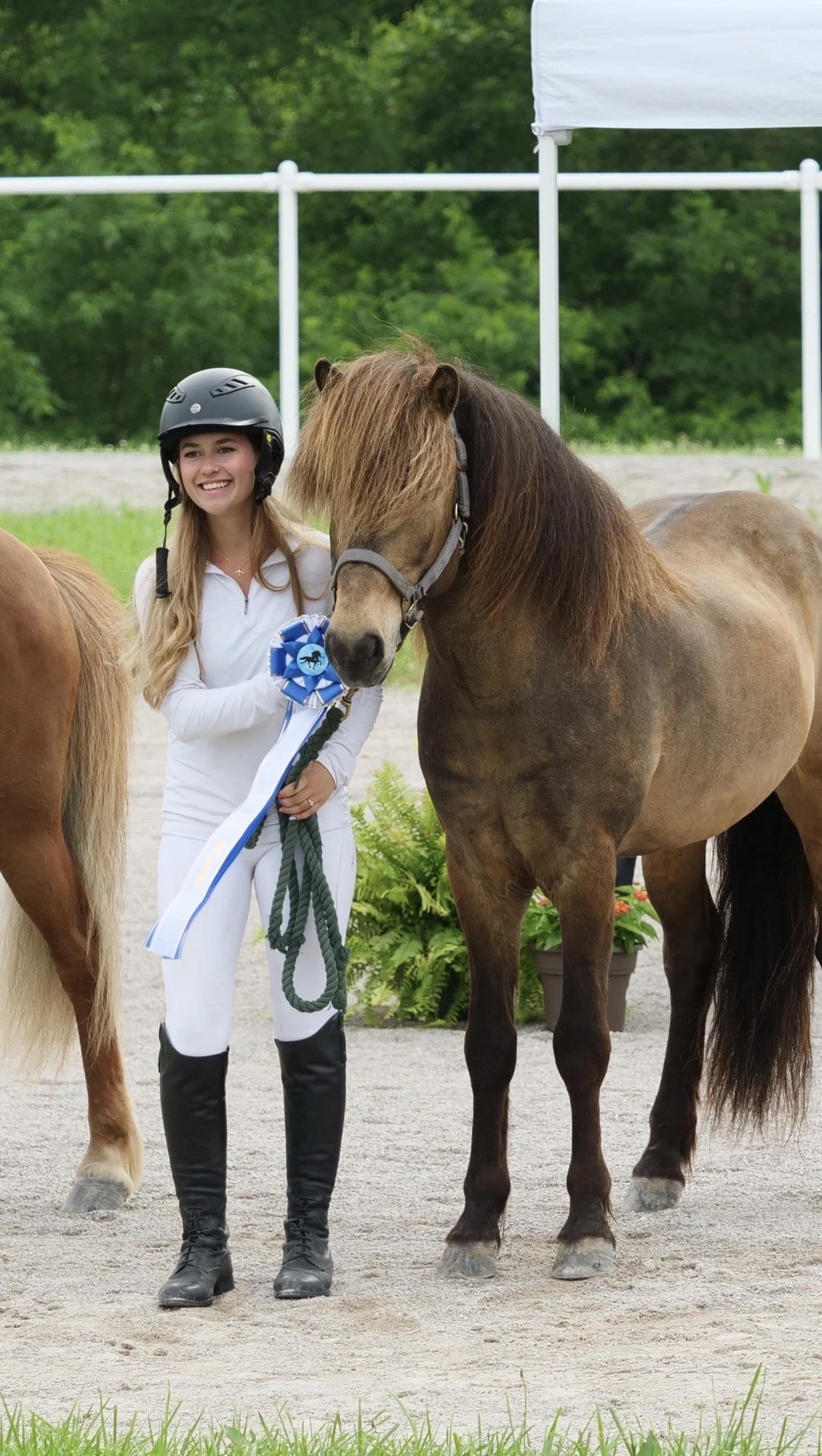When Molly finally graduated she accepted an offer to join the Lettleiki training team and began working closely with Paetra Hennigar and Alex Dannenman. She enjoyed competing at shows in the US and fell in love with how curious and expressive the horses she worked with were. While developing and learning Icelandic training techniques she has also enjoyed branching out and trying things like Dressage with her partner Dugur from Tolthaven, where over two years he taught her patience, finesse, success, and a love for blueberry poptarts.